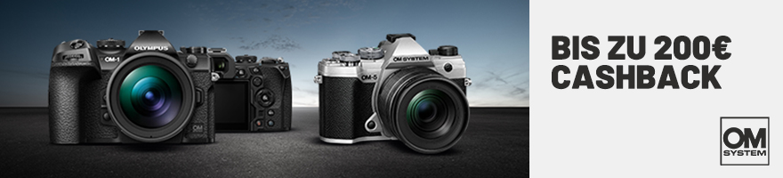 Profitieren Sie bis zum 2. April 2023 von bis zu 200 € Cashback auf die OM SYSTEM OM-1 und OM-5.