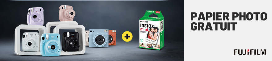Vous recevrez du papier photo gratuit à l'achat des divers produits de Fujifilm Instax.