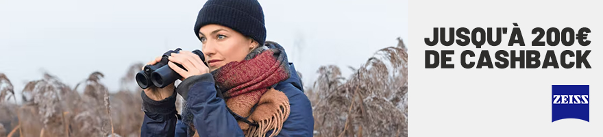 Profitez maintenant de jusqu'à 200 € de cashback lors de l'achat de jumelles Zeiss sélectionnées. Pour recevoir le montant de cashback, utilise la promotion "échange vieux pour nouveau". Il te suffit de remettre une ancienne paire de jumelles pour obtenir du cashback. La marque et l'état de l'ancienne paire n'ont pas d'importance.
